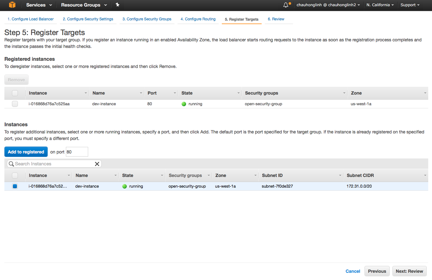 Click "Next: Register Targets", you will see a list of EC2 instances that you can choose to add to Registered. Click on instances that you want to select, then click the button "Add to Registered".